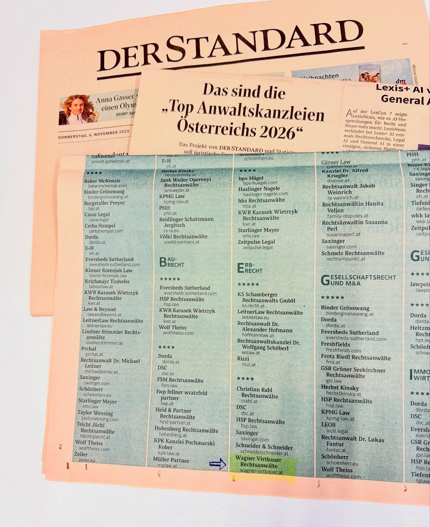 WAGNER VIRTBAUER Rechtsanwälte zählt laut @derstandardat österreichweit zu den Top Anwaltskanzleien 2026 im Bereich Erbrecht!